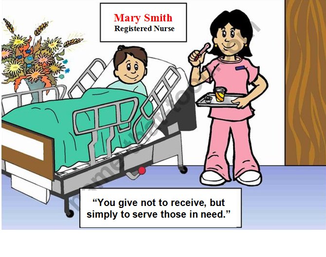 A Personalized Cartoon shows who you are and what you love doing! Nursing is a profession of selflessness and this unique cartoon with an inspirational quote captures it.